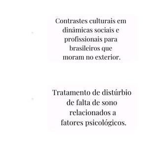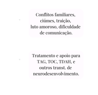 Realizo, ainda, Avaliação Pré-Cirúrgica, ajudando pacientes a se prepararem emocionalmente para procedimentos médicos importantes. Para complementar minha formação, concluí uma Pós-Graduação em Gestão de Pessoas e Coaching, áreas que me permitem integrar práticas de desenvolvimento pessoal e profissional ao atendimento terapêutico.